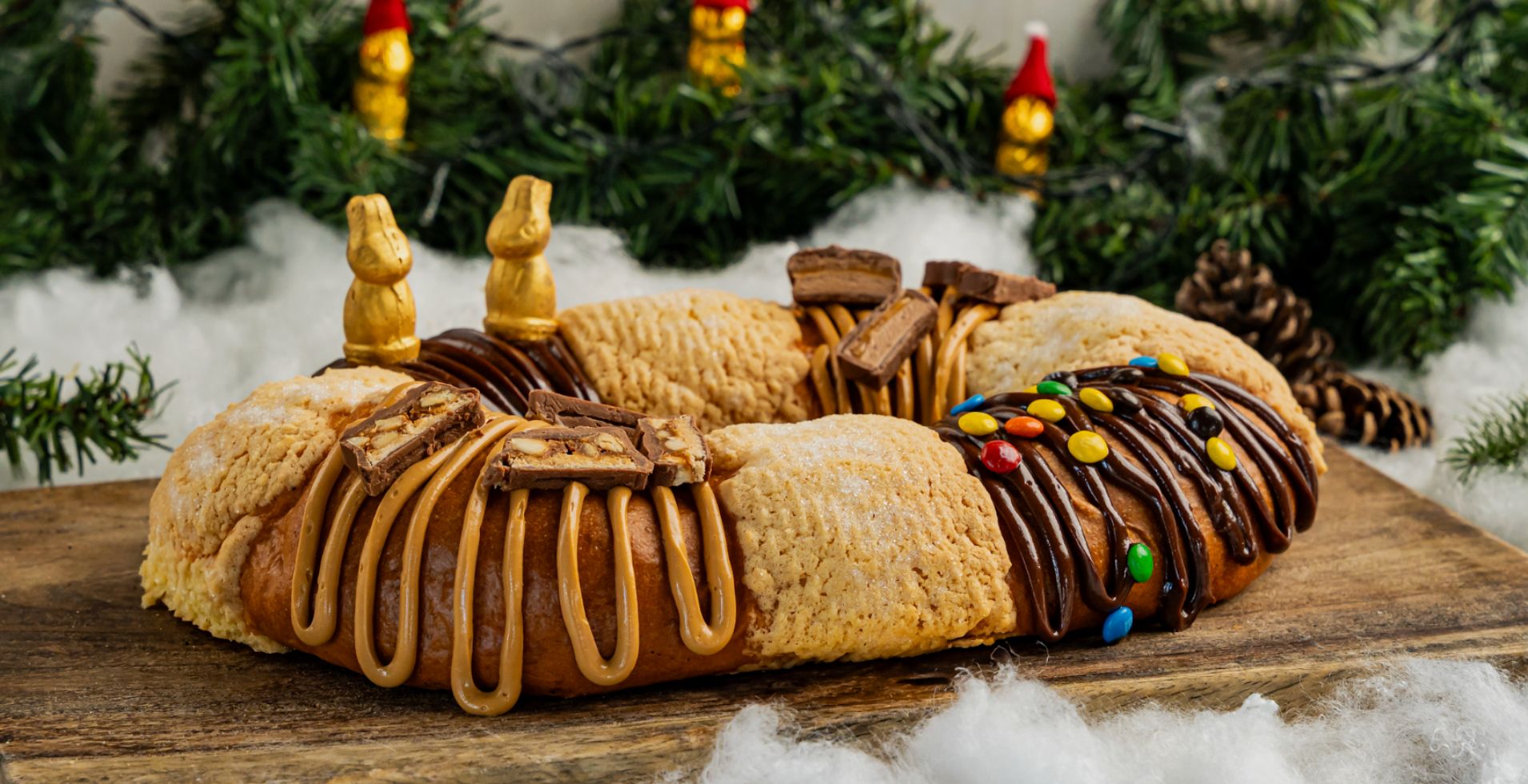 Mini M&M’s, pieces of Snickers, chunks of Milky Way, and mini Turín chocolate bunnies on top. These toppings aren’t just there to look good. Every slice is different, and that’s exactly what makes everyone want to try every part of this Rosca De Reyes.